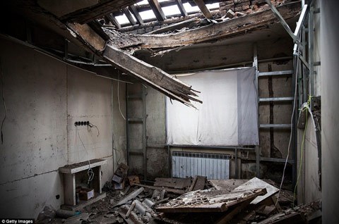 In a shelled city, underground is the only safe place to be, to some extent at least. An actual bunker would be ideal, but people try finding shelter anywhere underground. In buildings, windows and doors are covered with sandbags and people sleep in the interior room away from exterior walls and windows. Windows never survive shelling. The broken glass makes it impossible to stay warm in winter. Plastic sheeting can sometimes be used to close openings and still allow light in, but this is far from an ideal solution and he loss of heat is substantial.