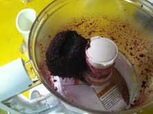 I stirred the jerky every hour and poked the fruit. After about 3 hours and no more patience, I took both out and let them cool. The fruit tasted like a fruit roll-up. Very yummy! The fruit hardened after cooling. I then added these two back into the processor at the same time and let her rip. With more moisture evaporated, both the meat and fruit broke down into smaller pieces.