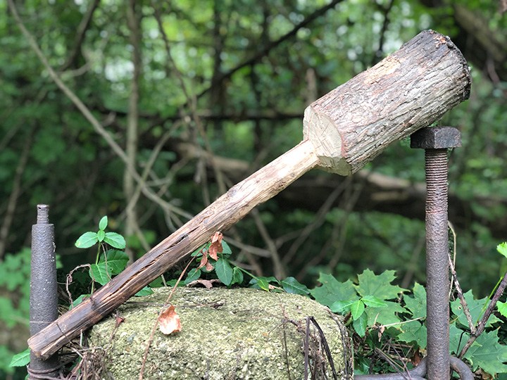 When I was about 10 years old, my Grandfather made my brother and I each a gift – a wooden maul for splitting wood. It’s made from a large 8″ diameter x 4-foot hickory log. I remember when I could barely lift it. It was a practical gift and a true working man’s tool.