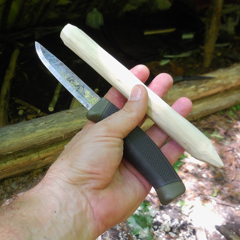 Both the spindle and hearth board can be made from one limb. Carving the spindle this way will require more whittle work though. If available, use a straight stick to save time and energy.